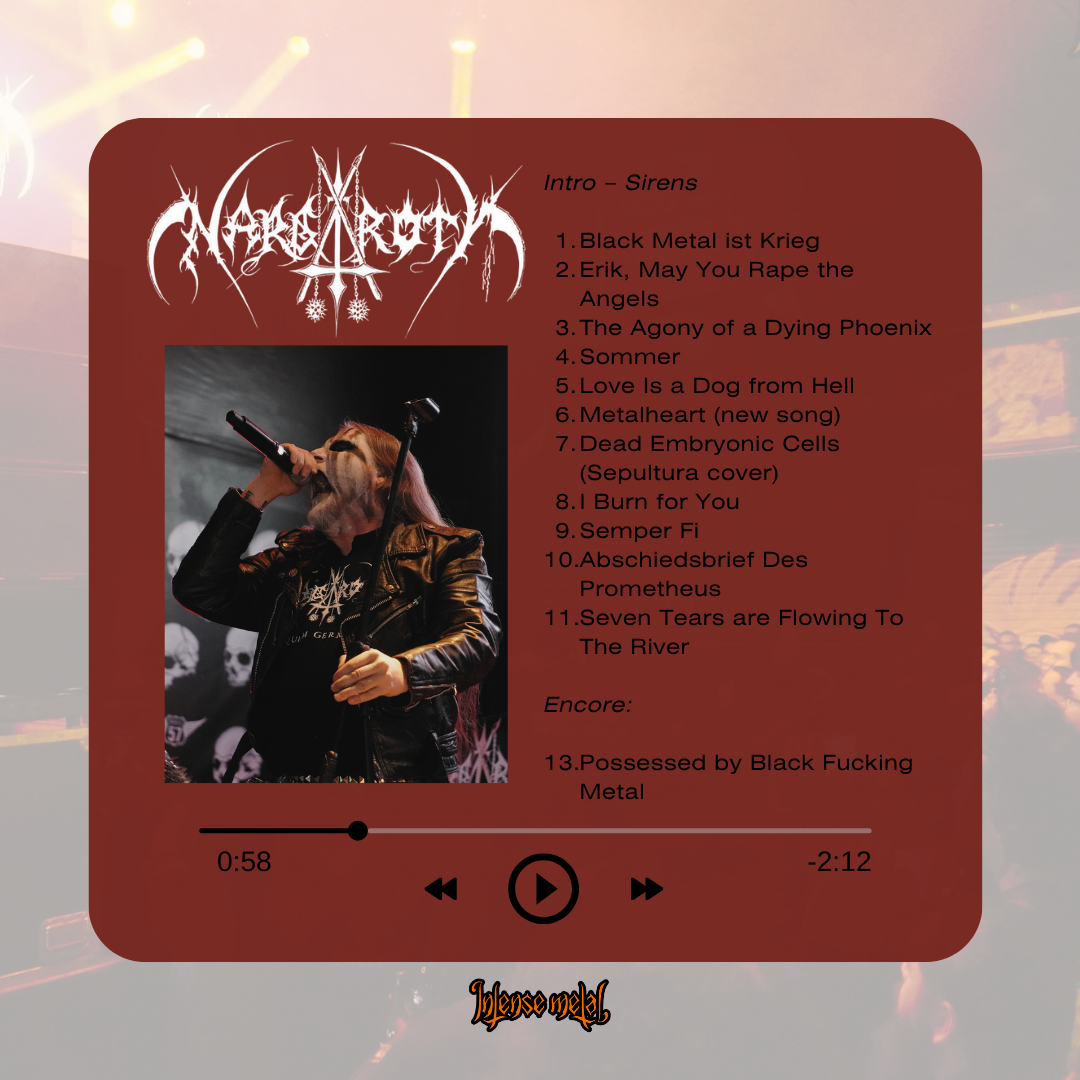 Nargaroth denominó esta gira como Altars of Death Tour 2026. Estábamos frente a un altar, no ante un escenario, navegando entre estados de ánimo que van de la furia primitiva a la contemplación amarga, como si cada riff y alarido fueran un paso más en un camino que desciende a lo más profundo del espíritu humano.