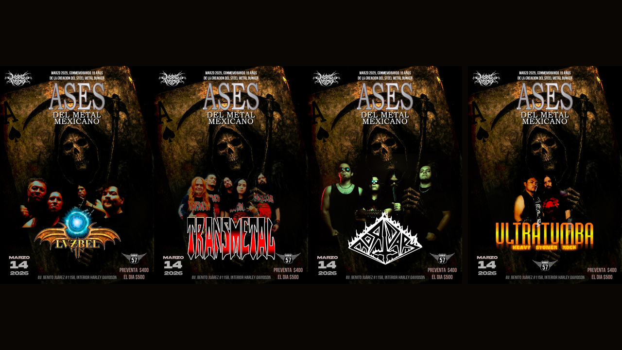 El metal mexicano tiene cita con la historia. José Luis Sandoval y su Bunker, el foro emblemático de San Luis Potosí, conmemora quince años de trayectoria ininterrumpida con un evento que promete quedar grabado en la memoria de los metaleros potosinos. Bajo el nombre Ases del Metal Mexicano, el sábado 14 de marzo de 2026 se presentarán algunas de las bandas más representativas de la escena nacional en un cartel que rinde homenaje a la diversidad y potencia del metal hecho en México.
