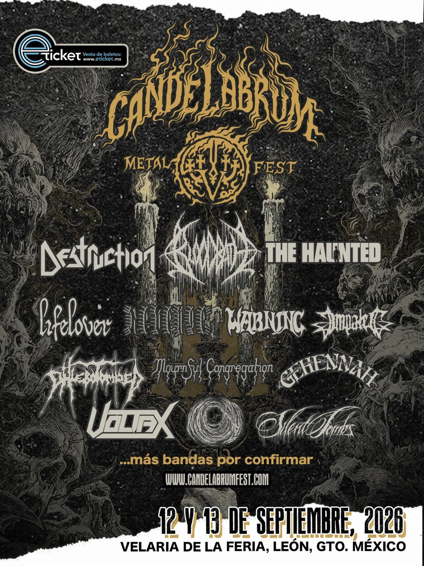 El Candelabrum Metal Fest V se consolida como el encuentro metalero más importante de México y, posiblemente, de Latinoamérica. Los días 12 y 13 de septiembre de 2026, la Velaria de la Feria en León, Guanajuato se vestirá nuevamente de negro para recibir a una de las propuestas más ambiciosas en la historia del metal nacional: un festival 100% techado con más de 8,000 m² de infraestructura diseñada para que ni el clima ni las circunstancias empañen la experiencia metálica.